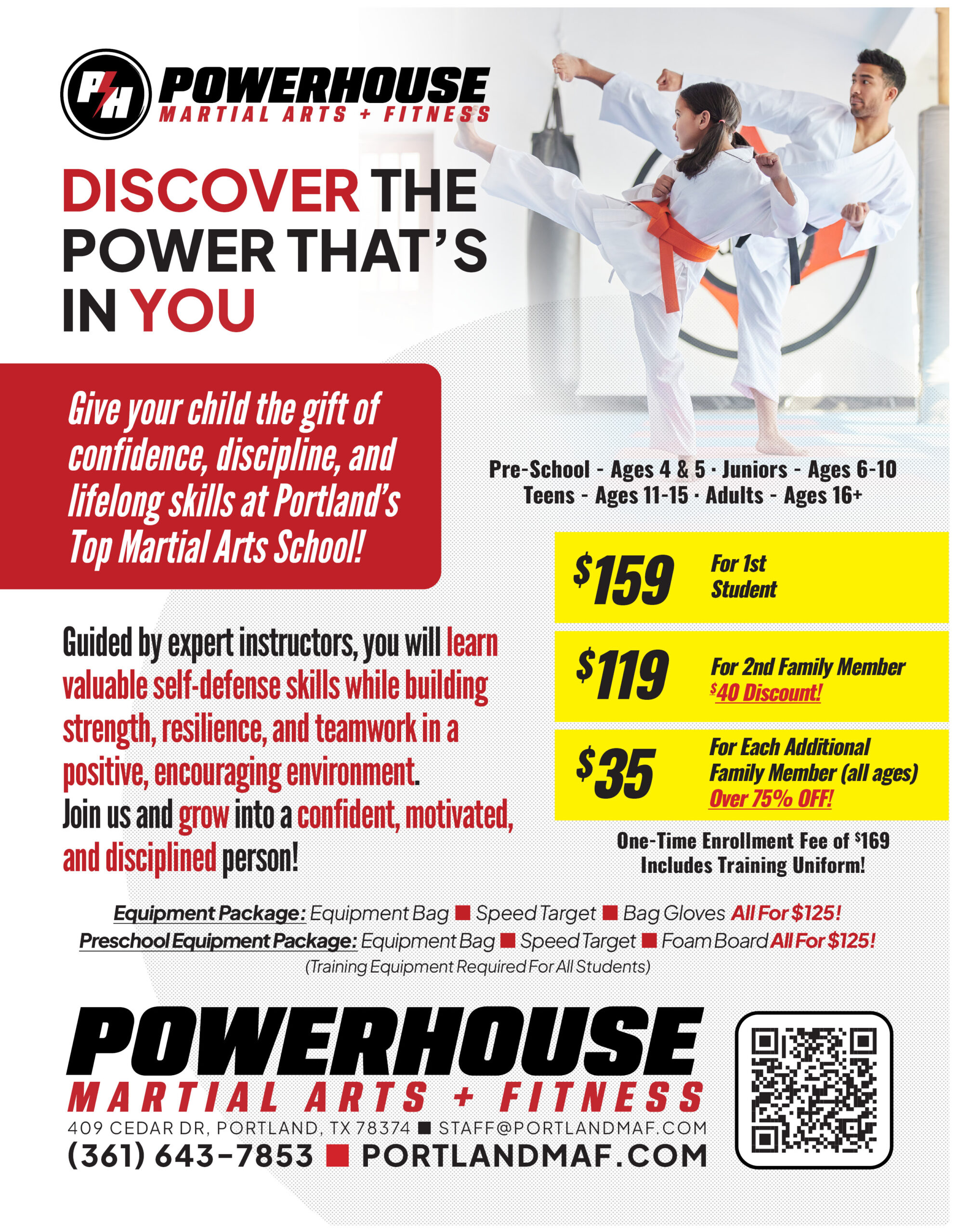 At Powerhouse Martial Arts & Fitness, we aren’t just teaching kicks and punches; we’re building a community. We offer flexible membership options designed to fit the busy lives of families and individuals alike. Whether you’re looking for a fun after-school activity for your child or a new way to stay active, our doors are open. Take a look at our programs below and become part of our family.